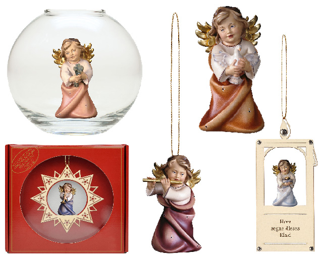 L’Arcangelo Gabriele, l’Angelo dell’Annunciazione, viene frequentemente appeso alla parte superiore della stalla. Se nella scena del presepe sono previsti ulteriori angeli, questi possono essere posizionati sulla stalla o su un altro oggetto sovrastante la stalla; ma gli angeli possono tranquillamente anche essere posizionati tra le altre figure del presepe.
